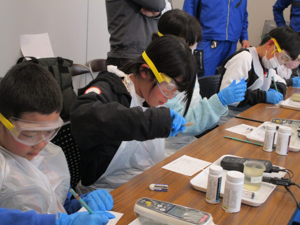 また私たちも使用する器具を用いて、水質測定を行ってもらいました。