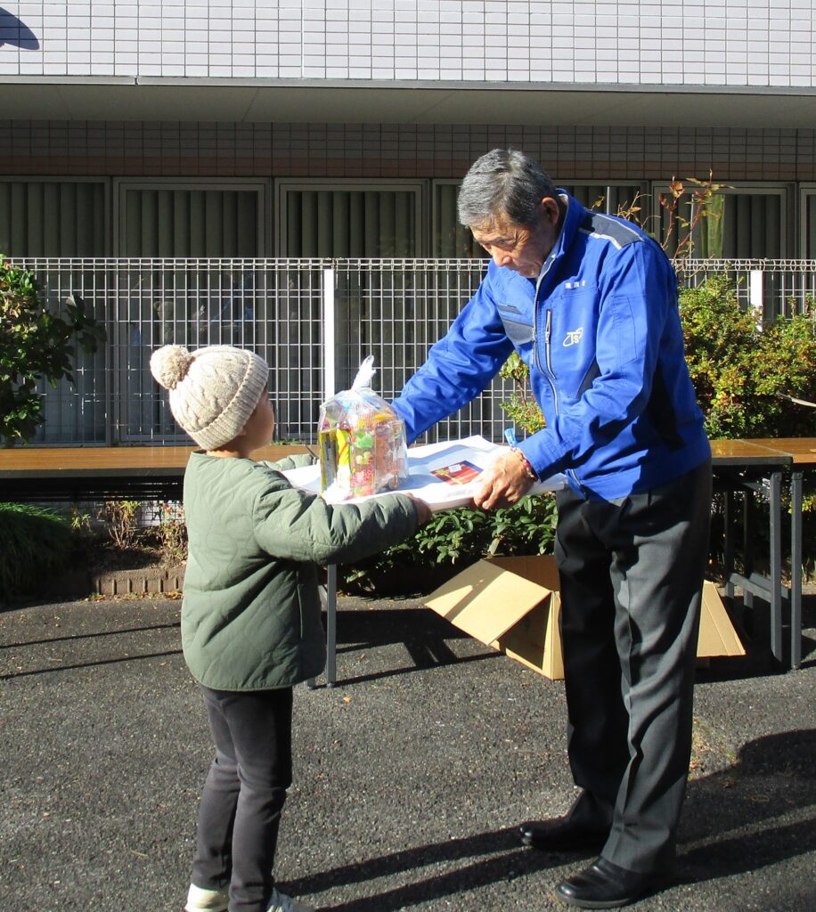 当日は、参加してくださった一人一人に描いていただいた絵を額に入れたものと図書券、お菓子を社長から手渡しました。