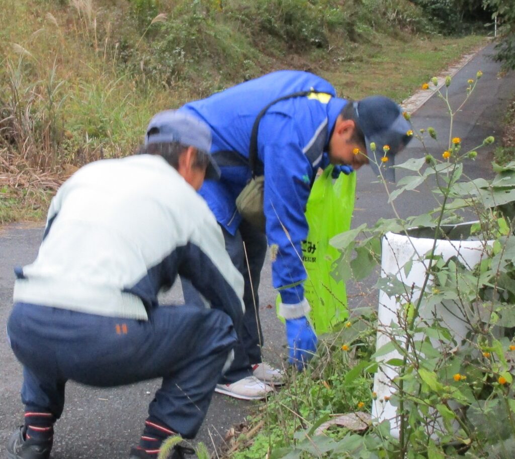 社~城山大橋までのゴミ拾いと市道沿いの草刈りに汗を流しました。